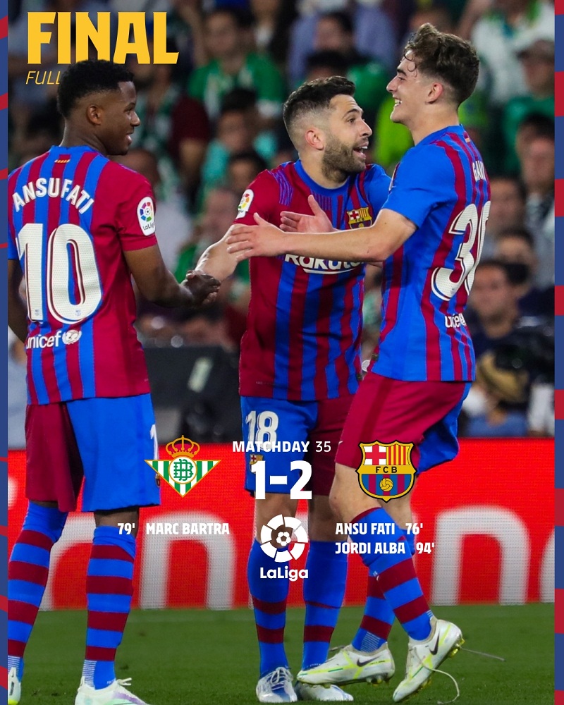 گل های این بازی را آنسو فاتی در دقیقه 76 و ژوردی آلبا در دقیقه 4+90 برای بارسا و مارک بارترا در دقیقه 79 برای بتیس به ثمر رساندند.