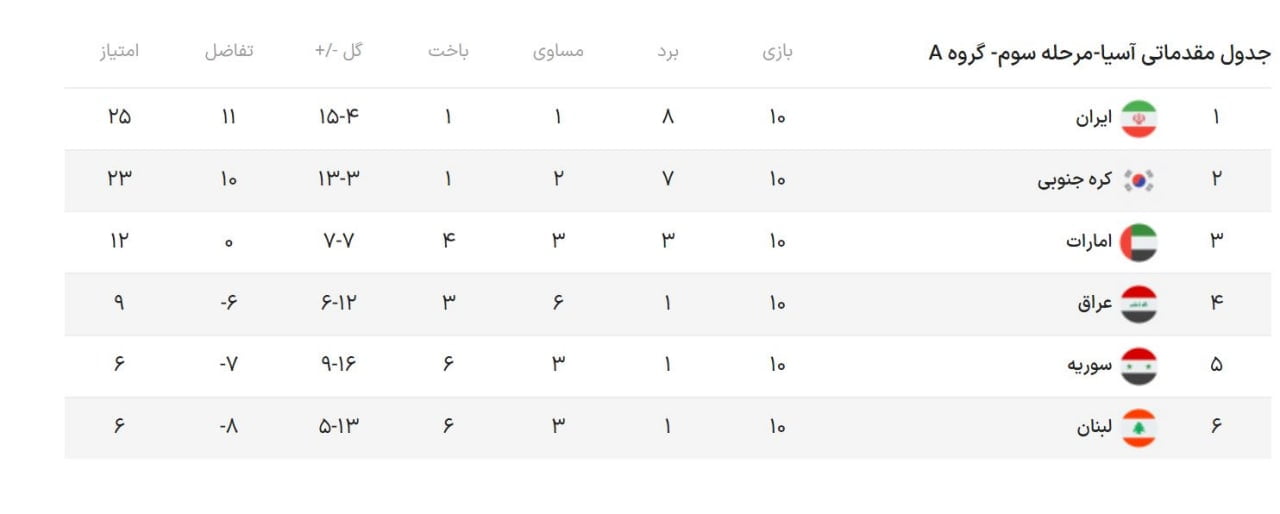 جدول نهایی گروه A مقدماتی جام جهانی 2022 | صدرنشینی ایران؛ امارات حریف استرالیا در پلی آف