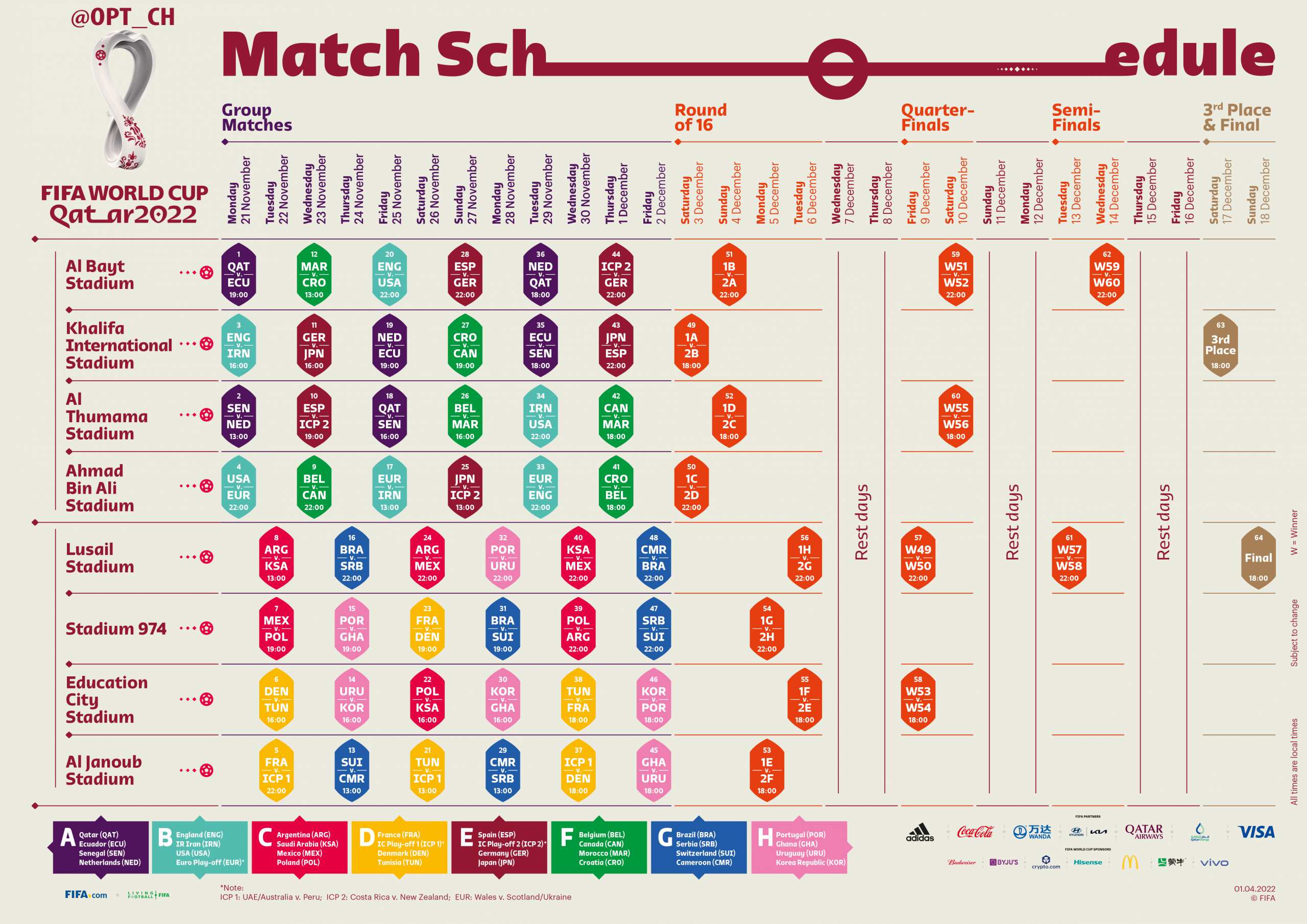 به گزارش دیلی فوتبال؛ برنامه رسمی بازی های جام جهانی 2022 قطر از سوی سایت فیفا اعلام شد که در این برنامه تغییر عجیبی در برنامه مسابقات رخ داد.