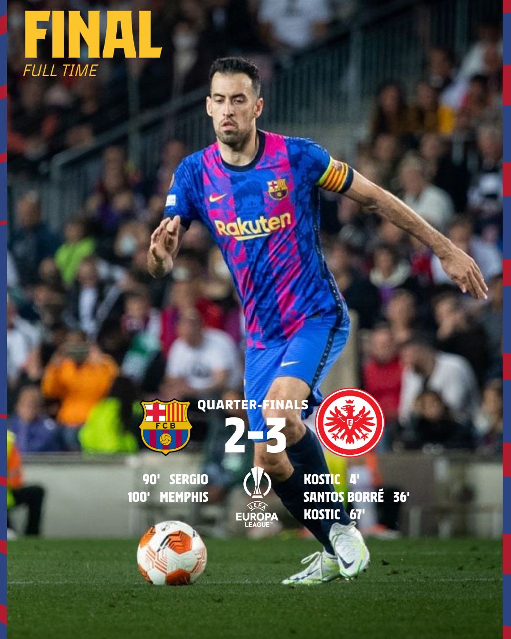با این نتیجه تیم فوتبال آینتراخت فرانکفورت با توجه به تساوی یک بر یک در بازی رفت (مجموع 4-3) به مرحله نیمه نهایی لیگ اروپا صعود کرد و بارسا از دور مسابقات حذف شد.