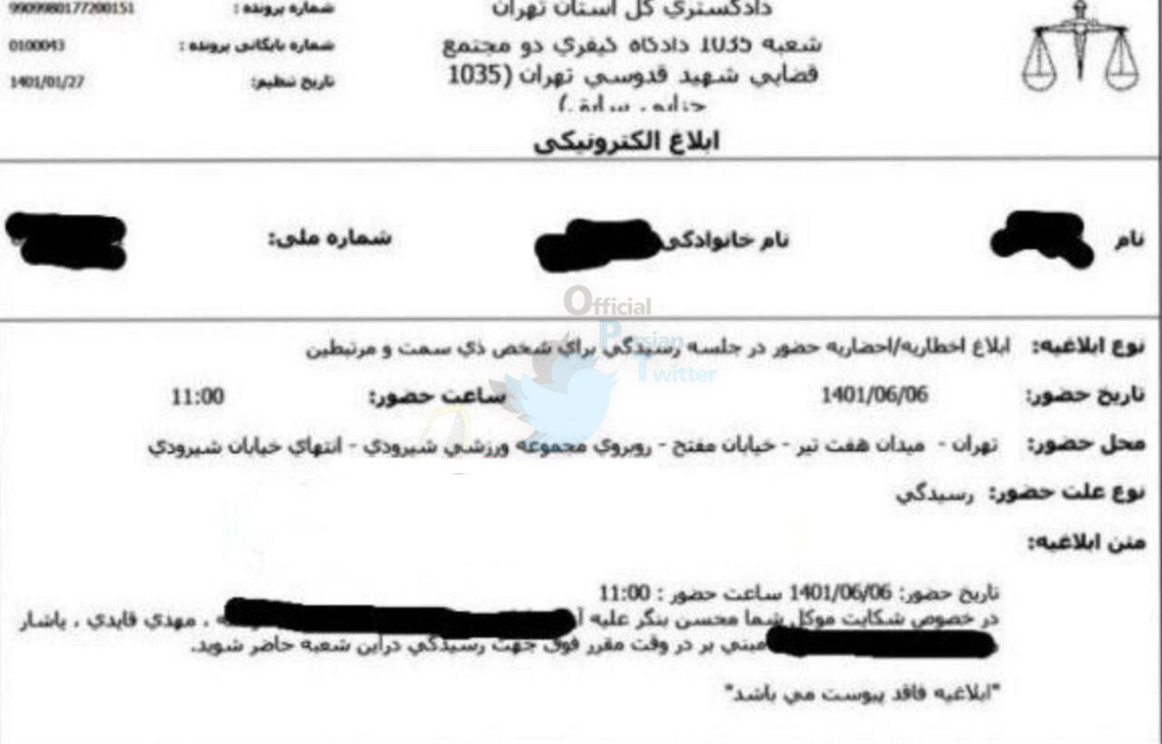 عکس| شکایت محسن بنگر از مهدی قایدی و همسرش