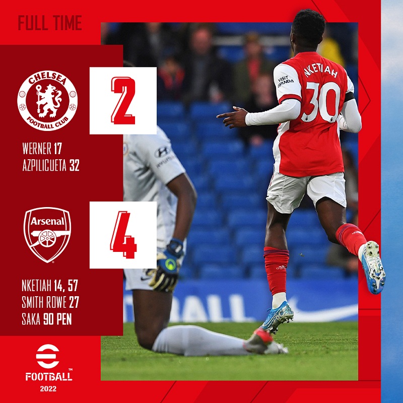 گل های این بازی را ادوارد انکتیا در دقایق 13 و 57، امیل اسمیت رو در دقیقه 27 و بوکایو ساکا در دقیقه 2+90 از روی نقطه پنالتی برای آرسنال و تیمو ورنر در دقیقه 17 و سزار آسپیلیکوئتا در دقیقه 32 برای چلسی به ثمر رساندند.