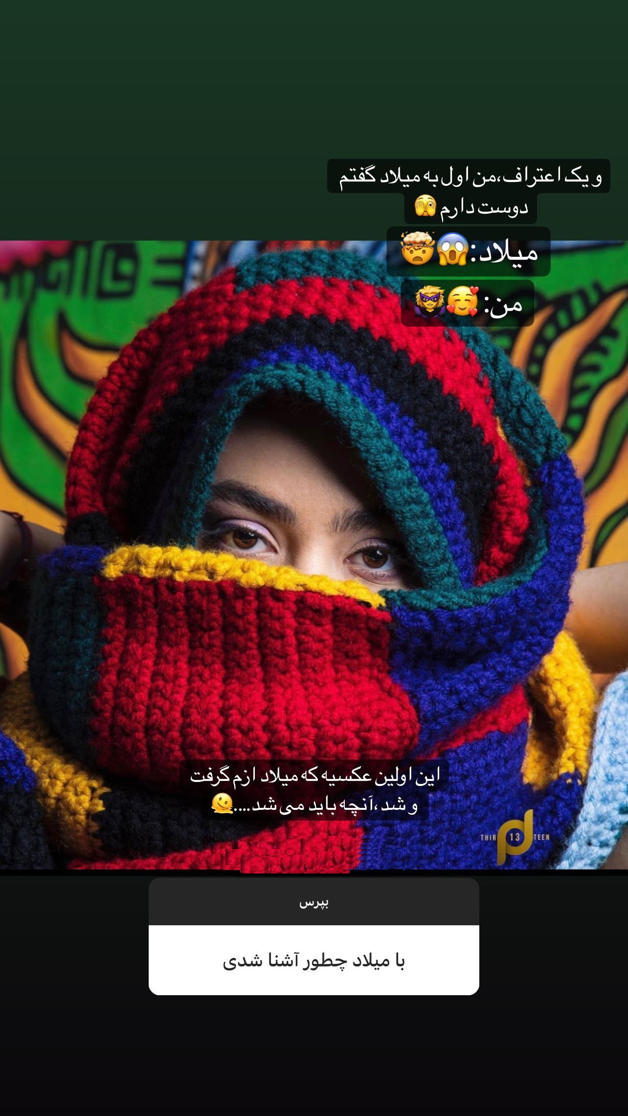این بازیگر زن سابق سینمای ایران در پاسخ به سوالی درباره نحوه آشنایی با میلاد خدایی نوشت: من اول به میلاد گفتم دوستت دارم!