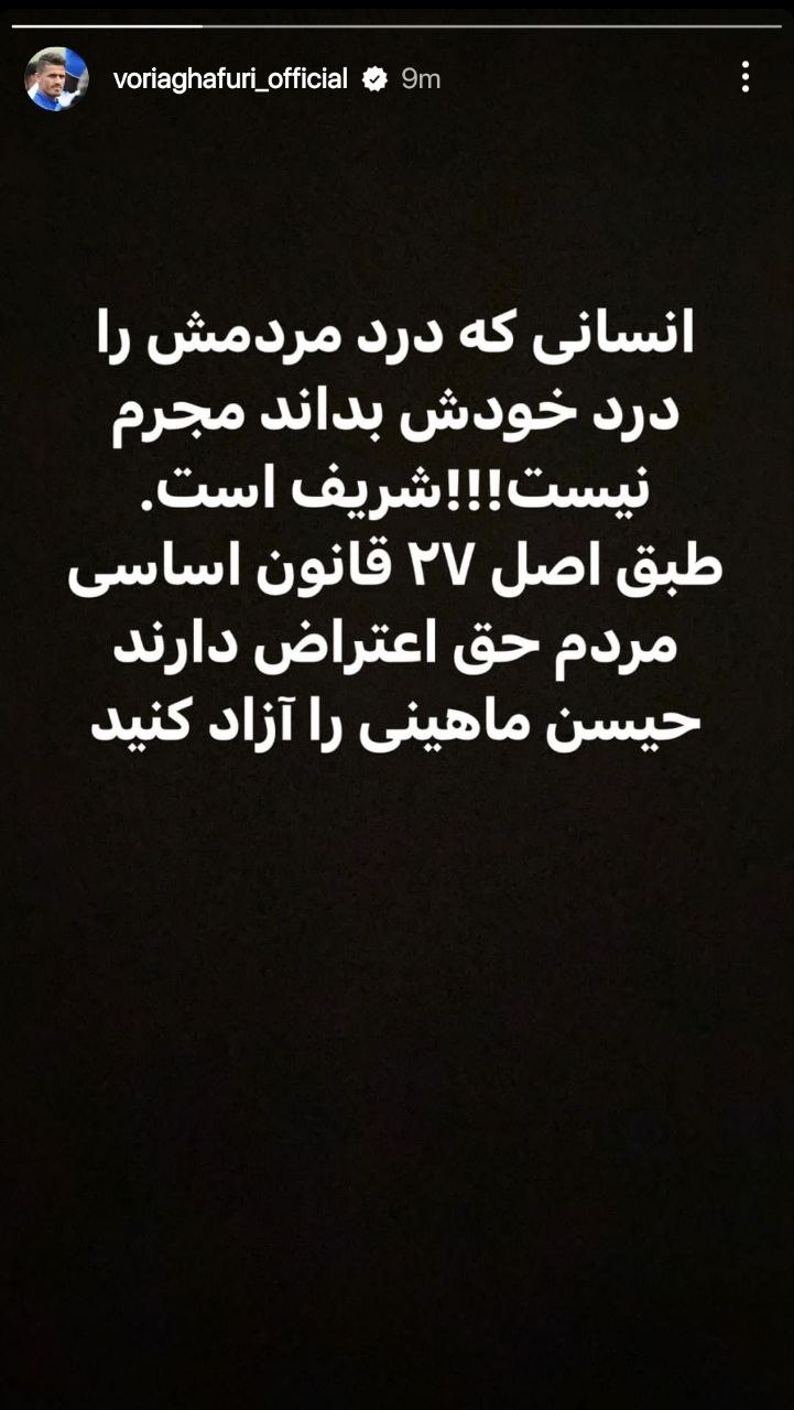 وریا غفوری نوشت: حسین ماهینی را آزاد کنید