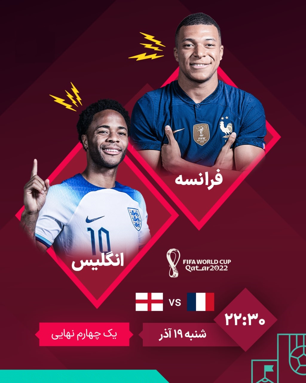 مطابق اعلام فیفا تیم ملی انگلیس و فرانسه در تاریخ شنبه 19 آذر 1401 به مصاف هم خواهند رفت.