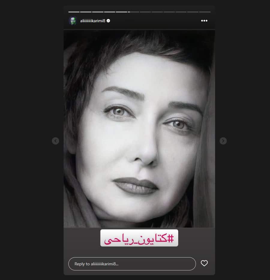 عکس استوری علی کریمی و حمایت از کتایون ریاحی که در اینستاگرام منتشر شده است را تماشا کنید.