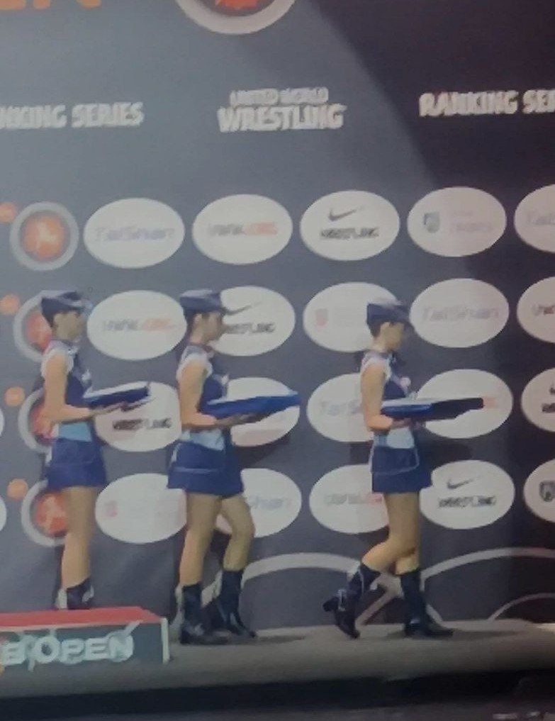عکس دختران بی حجاب در توزیع مدال کشتی