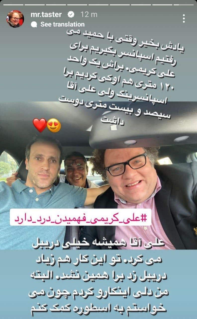 عکس استوری علی کریمی و افشاگری مستر تیستر علیه او که در اینستاگرام منتشر شده است را تماشا کنید.