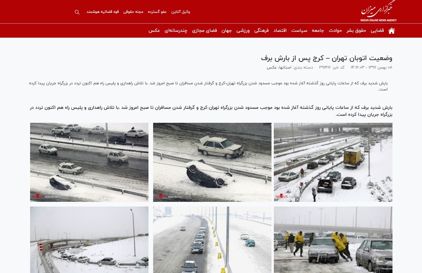 گزارش تصویری خبرگزاری میزان از وضعیت اتوبان تهران - کرج در بهمن 1396 را «اینجا» مشاهده کنید.