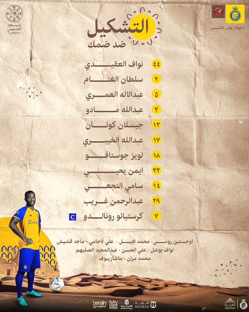 گفتنی است، کریستیانو رونالدو فوق ستاره پرتغالی النصر در ترکیب اصلی این تیم برای بازی با ضمک قرار گرفته و کاپیتان این تیم است.