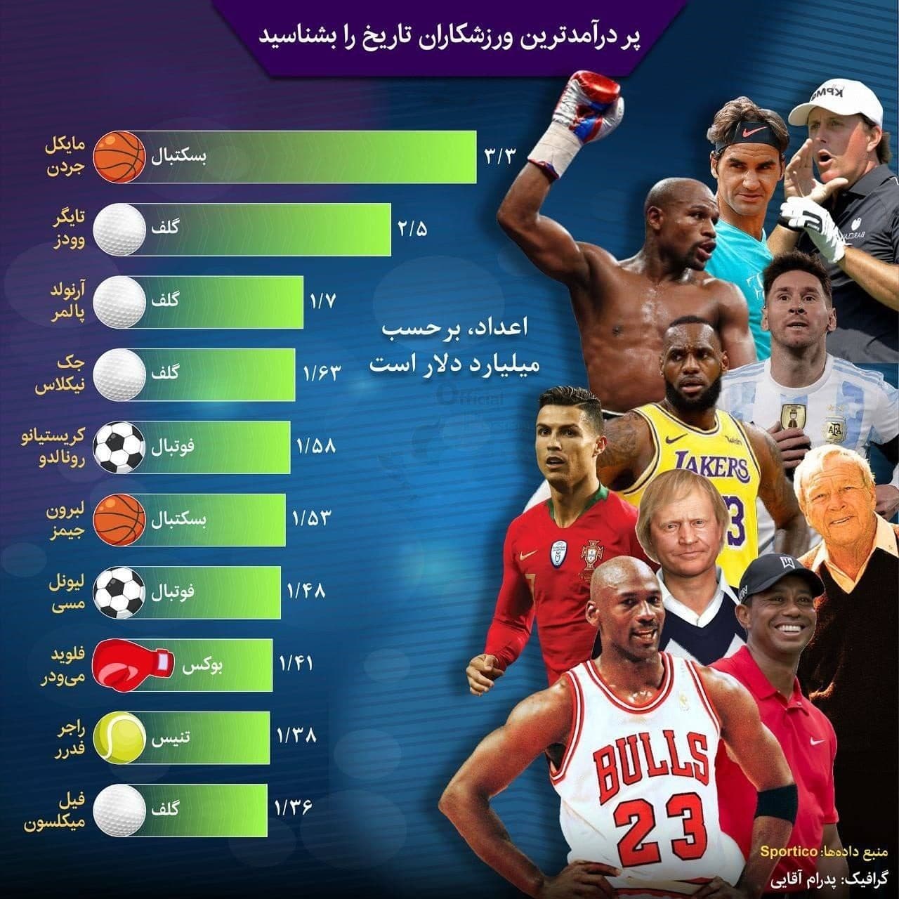 همچنین مایکل جردن بسکتبالیست مشهور آمریکایی به عنوان پردرآمدترین ورزشکار تاریخ جهان اعلام شده است.