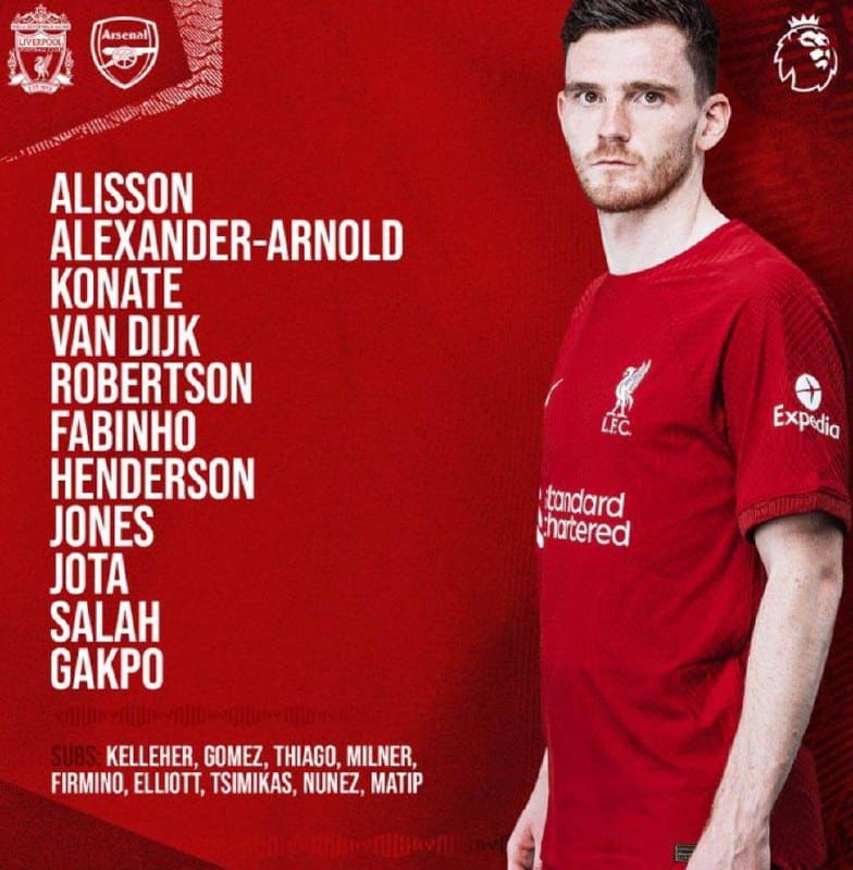ترکیب لیورپول برابر آرسنال برای بازی امشب 20 فروردین 1402