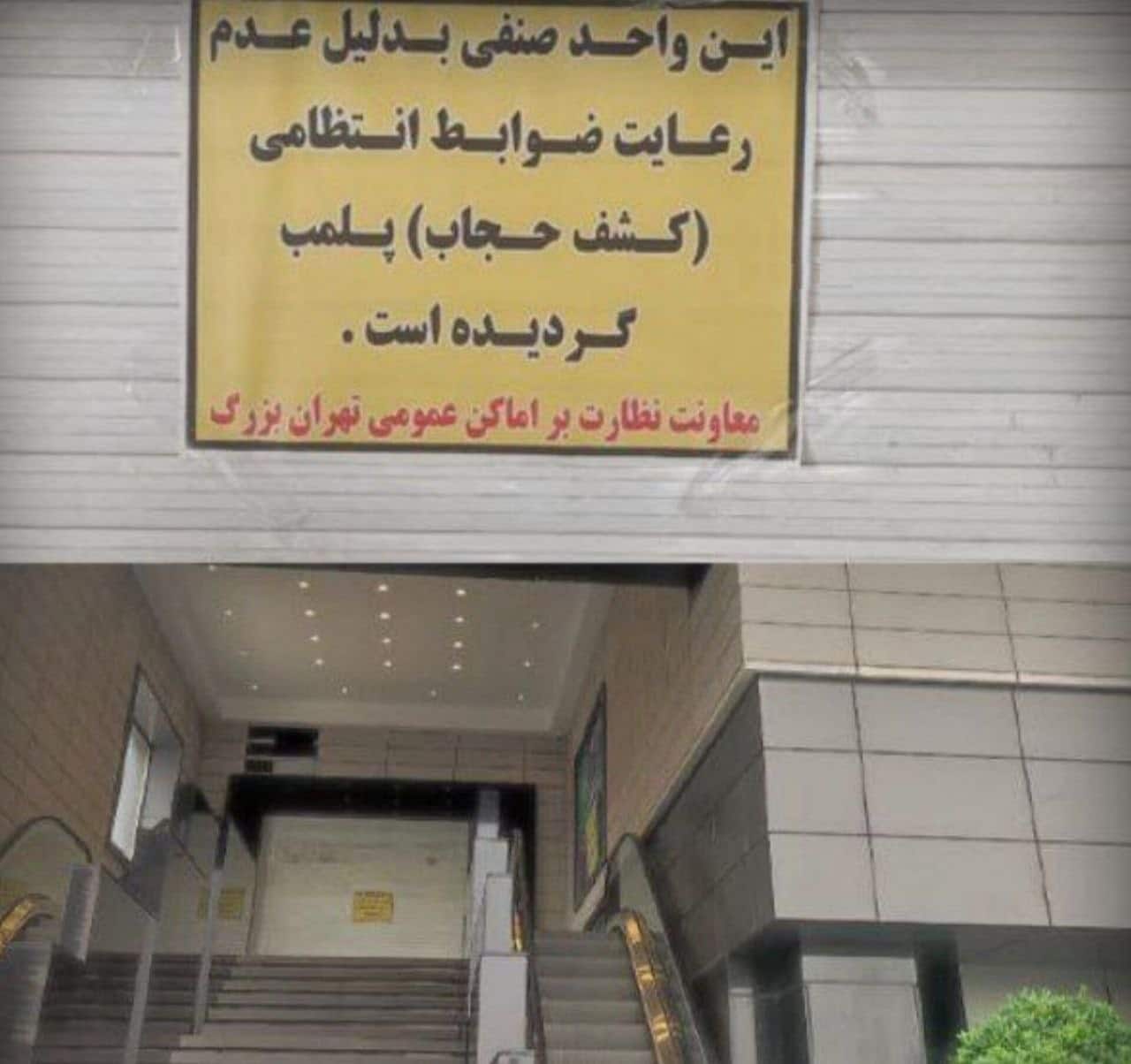 در این تصویر که در فضای مجازی فراگیر شده، مجتمع تجاری اوپال تهران علی رغم دریافت تذکرات متعدد در خصوص کشف حجاب به دلیل تمکین نکردن به هشدارها پلمب شد.