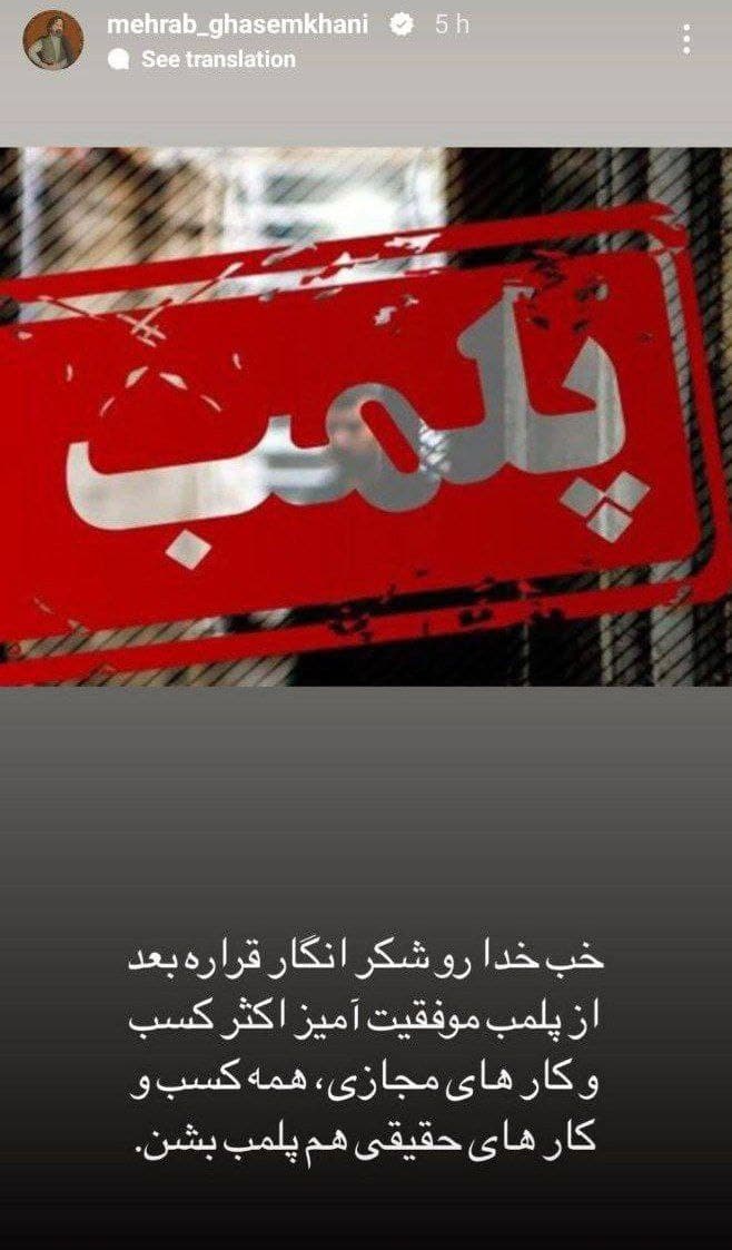 عکس واکنش مهراب قاسم خانی به پلمپ اماکن
