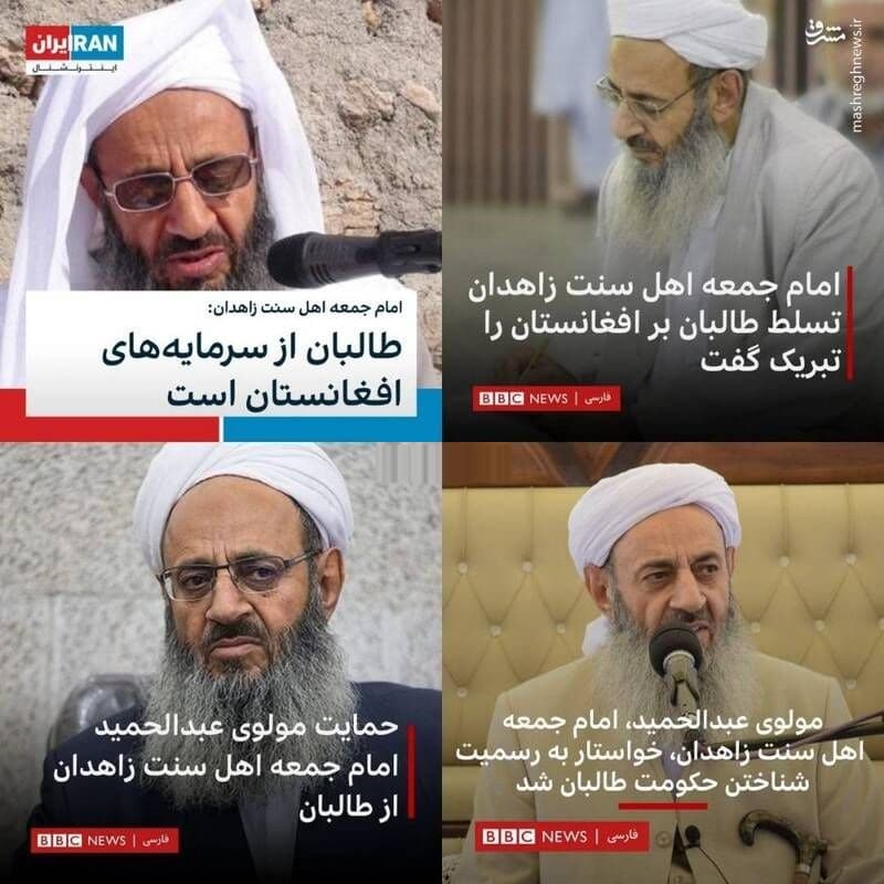 دولتمردان ایران خودشون طرفدار طالبان بودند چی شد رنگ عوض کردید. فقط لحظه شماری میکردید که طالبان به قدرت برسند بعد ماله کشی میکردید که طالبان فرق کرده و این طالبان آن طالبان سابق نیست. من ترک اردبیلم و شیعه هستم ولی درود میفرستم بر مولوی عبدالحمید و مردمان بلوچ و اهل سنت.