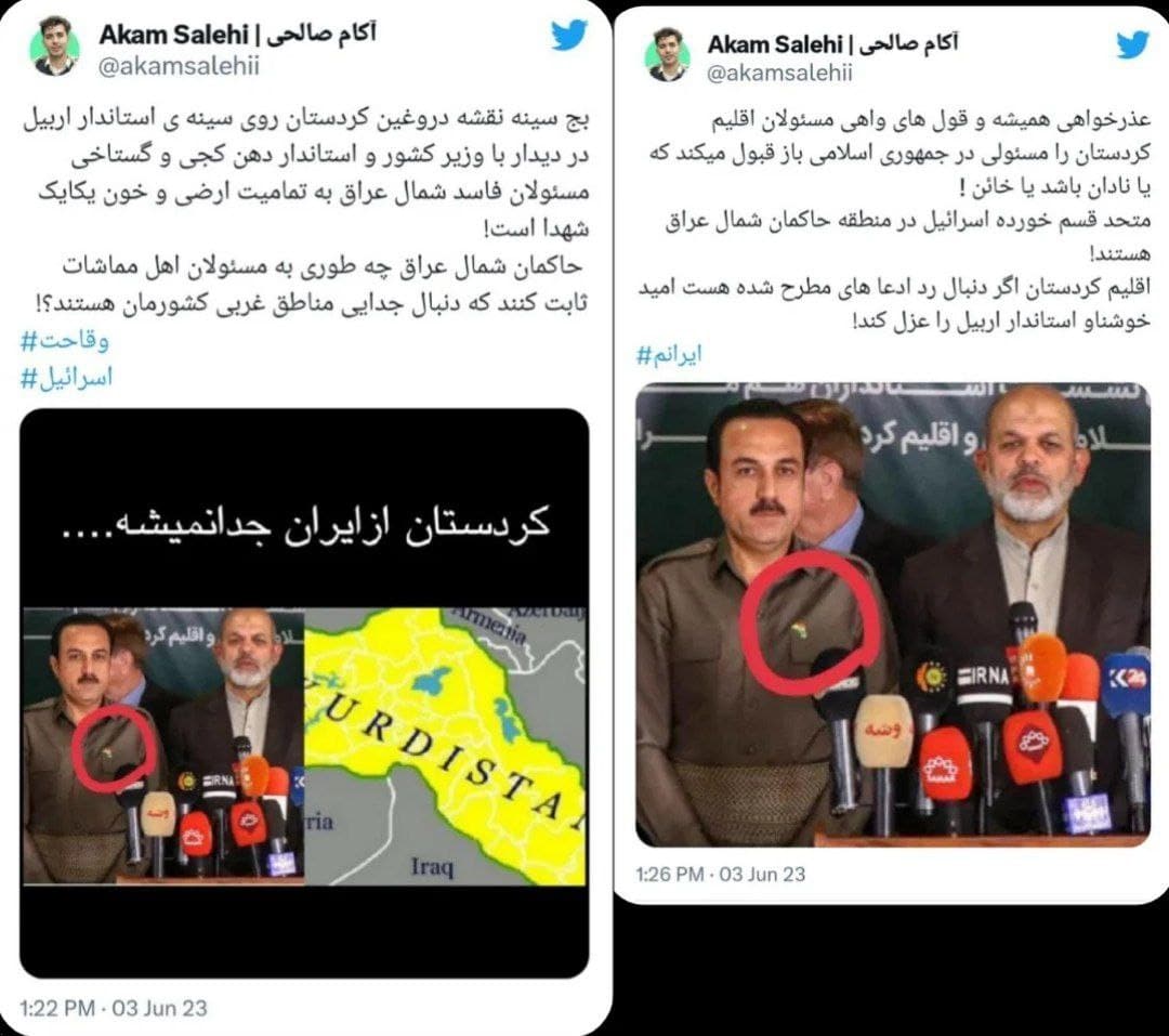 عکس واکنش تند کاربران به گستاخی استاندار اربیل عراق با نقشه تجزیه ایران که در توییتر منتشر شده است را تماشا کنید.