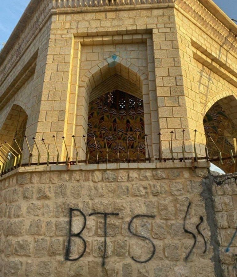 در این تصویر که با واکنش های منفی گسترده کاربران در شبکه های اجتماعی مواجه شده، تعدادی از هواداران گروه موسیقی کره ای بی تی اس روی دیوار یک بنای تاریخی در شهر شیراز شعارنویسی کرده اند.