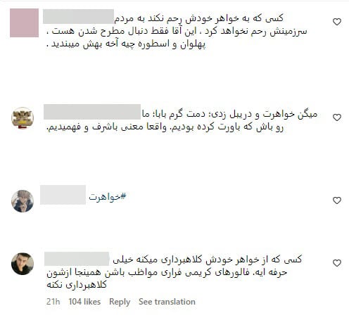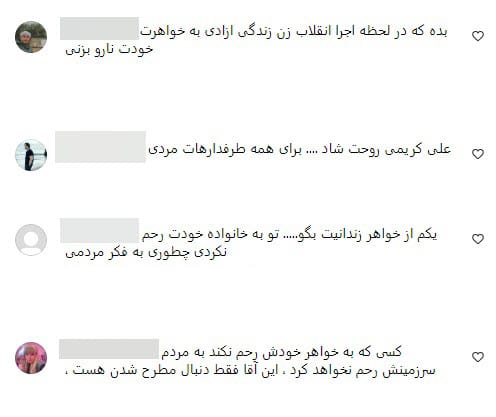 درود بر علی کریمی مرد با وجدان و با شرف ایران، کسی که وجدان و شرافت خودشو به پول و مقام و منصب نفروخت ، احمق هایی که میگن علی کریمی بخاطر پول و ویزای آمریکا و کانادا و آلمان دست به این کار زد ، انسانهای احمقی هستند که دستشون به خون جوانان وطن آلوده است ، اونایی که کف خیابون دختران ایرانی رو کور کردند کودکان و نوجوانان و جوانان ایرانو کشتند و زندانی کردند ، علی کریمی داخل ایران هم پولدارترین بود هم معروفترین ، هم براحتی میتونست به تمام نقاط دنیا مسافرت کنه و حتی اقامت بگیره ، ولی انسانیت و شرافت خودشو نفروخت و دست در دستان جنایتکاران نگذاشت ، علی کریمی در قلب ما ایرانی ها جا داره ، اون کامنت ها هم مربوط به سایبری های حکومتی هستند که هر کدوم با چند اکانت مختلف میان و پیام میذارن