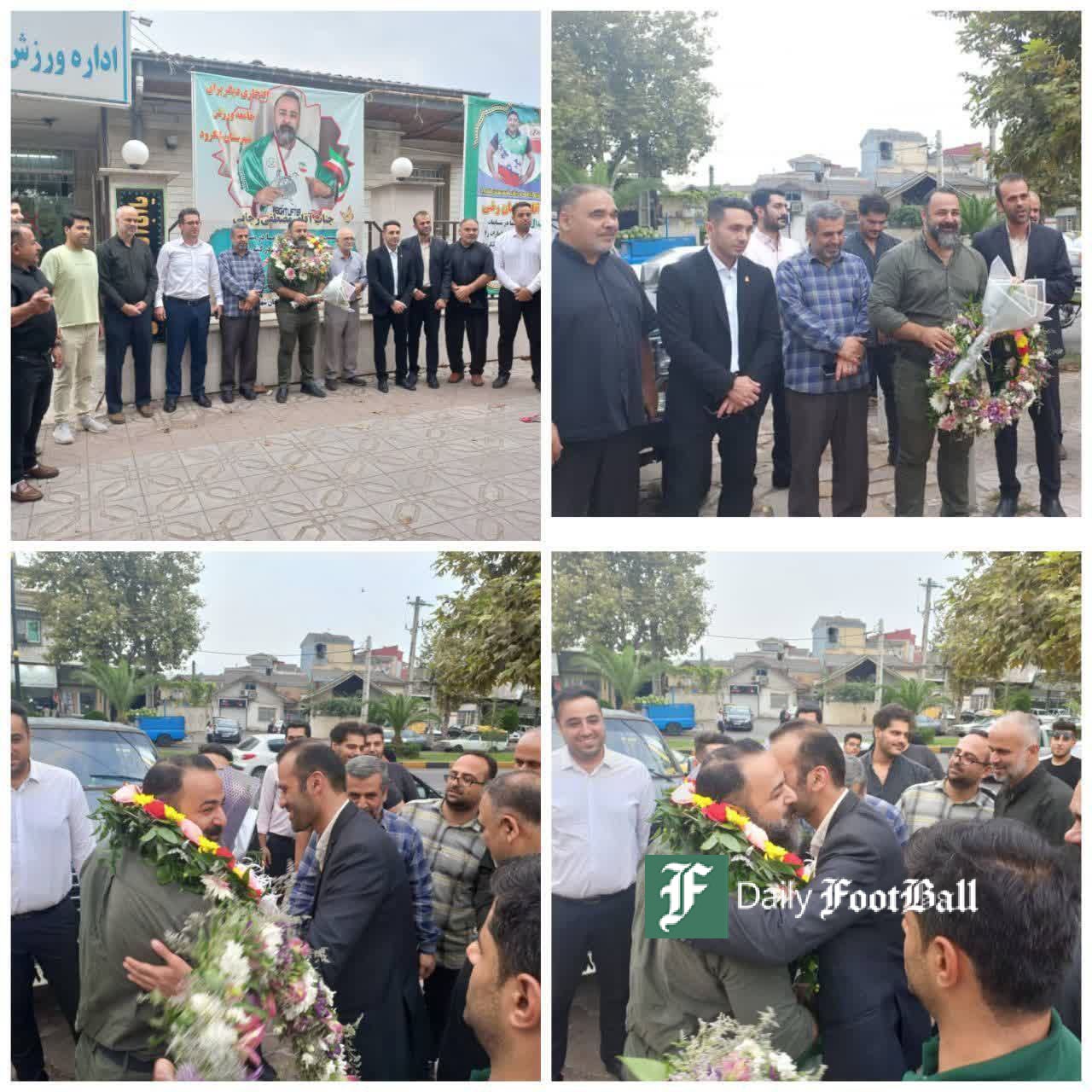 عکس استقبال مسئولان محلی لنگرود از مصطفی رجایی وزنه بردار هتاک