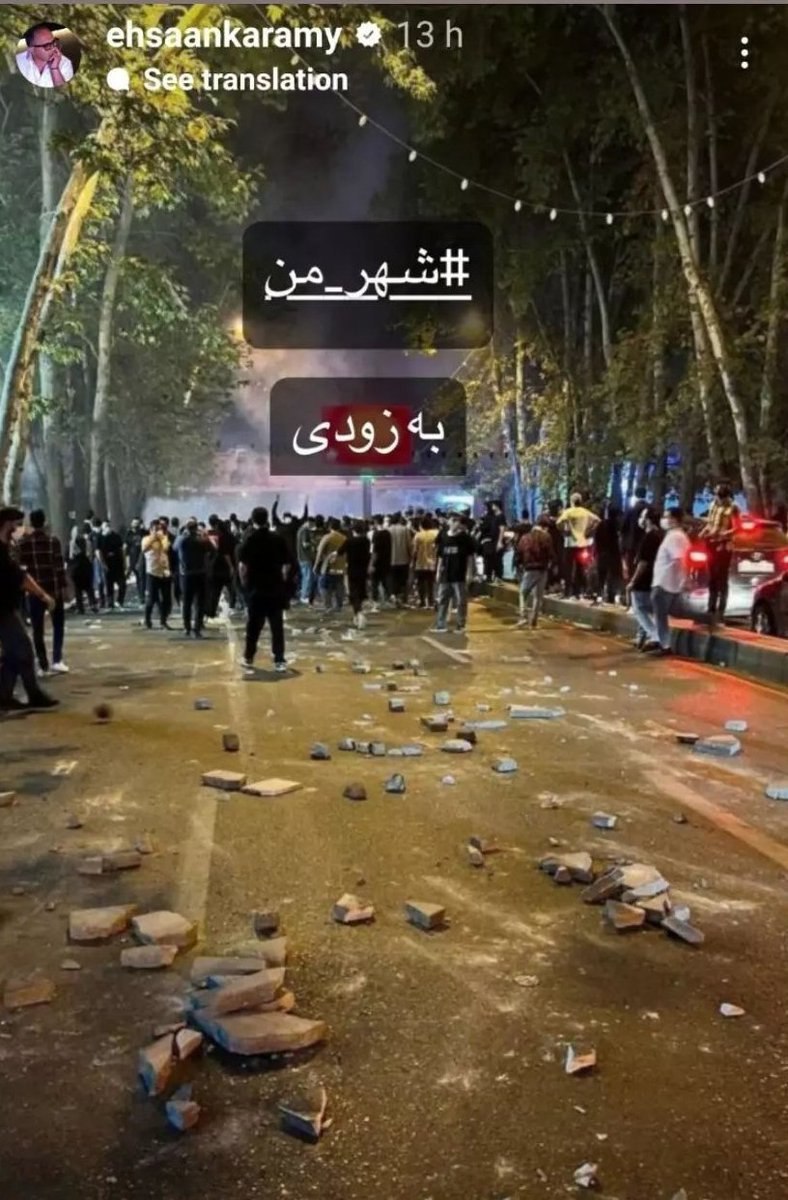 عکس استوری احسان کرمی برای تحریک اغتشاشگران در سالگرد مهسا امینی