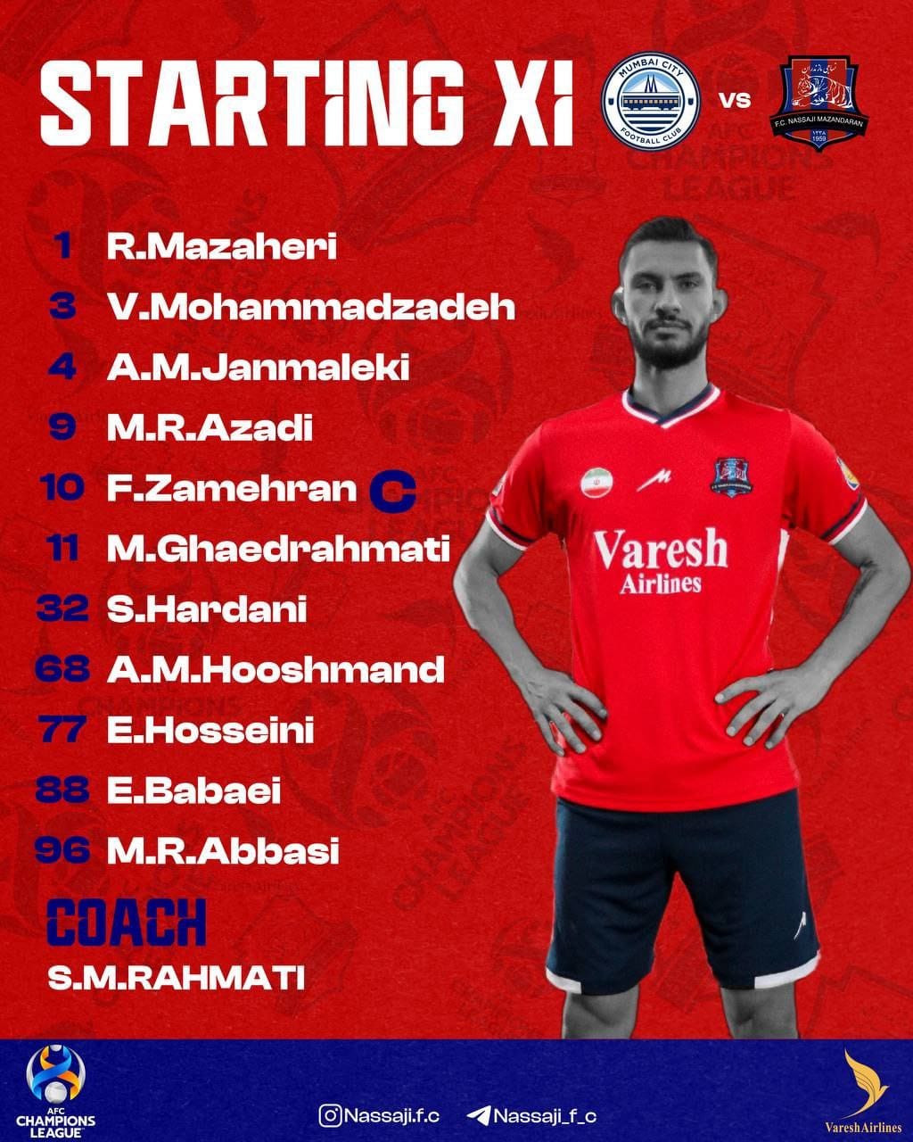 ترکیب اصلی نساجی مازندران برای بازی با بمبئی سیتی