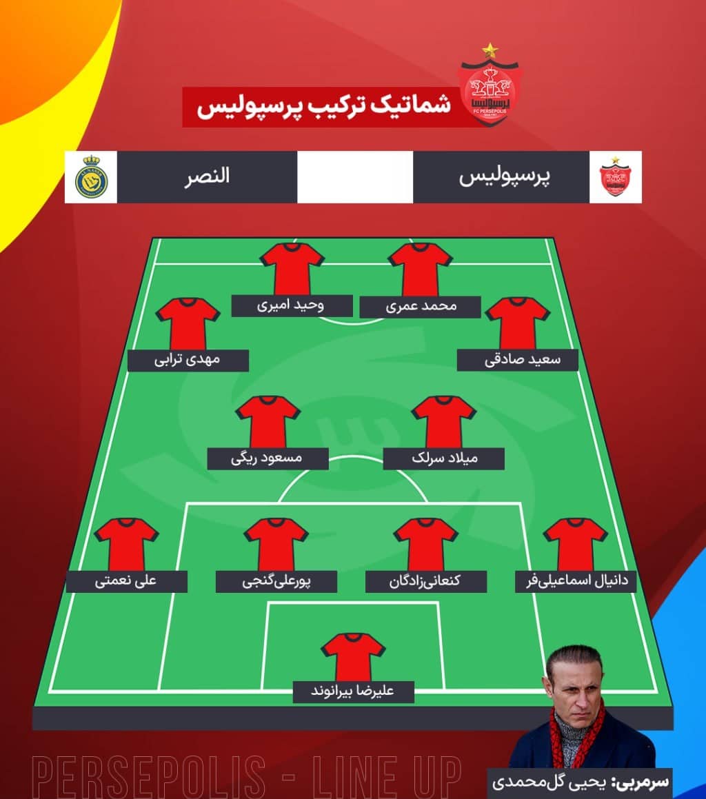 ترکیب پرسپولیس مقابل النصر برای بازی امشب 28 شهریور 1402