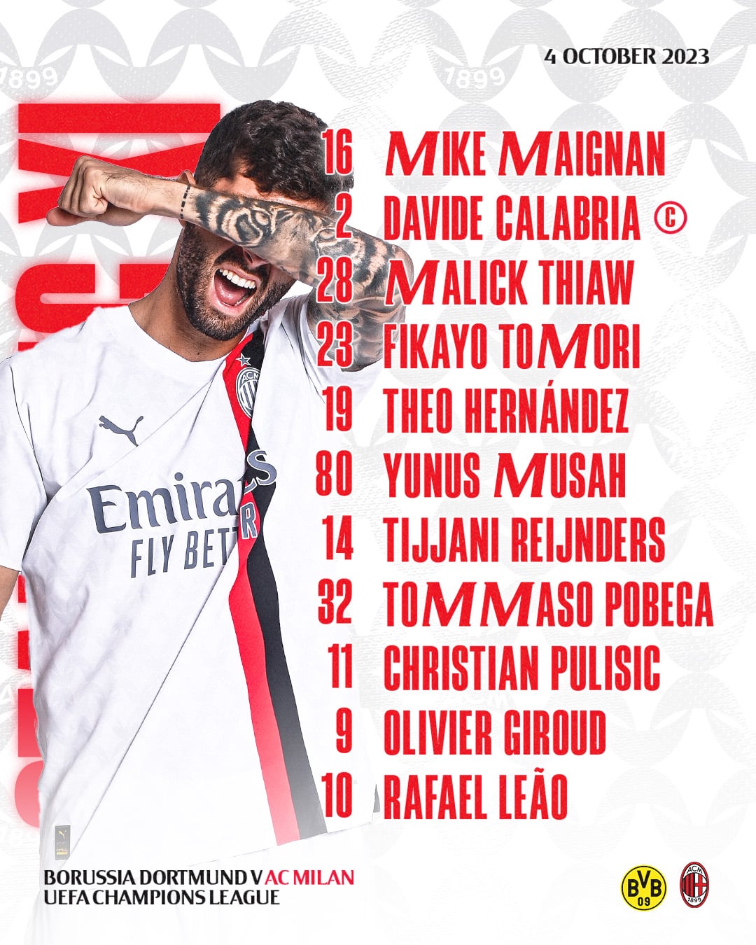 ترکیب میلان مقابل دورتموند برای بازی امشب 12 مهر 1402