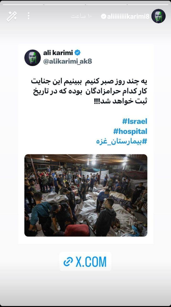 عکس واکنش علی کریمی به کشتار مردم غزه در بیمارستان