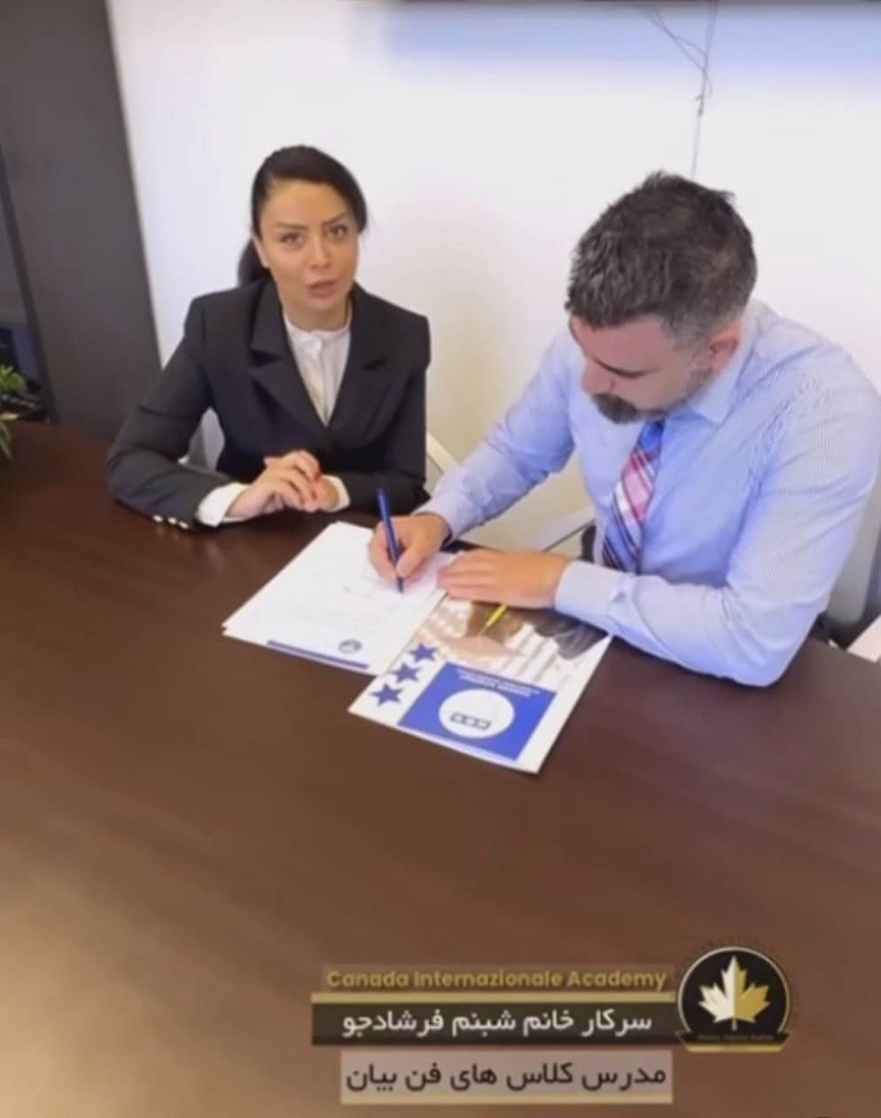 در این تصویر که با واکنش های متفاوت کاربران در شبکه های اجتماعی مواجه شده، شبنم فرشاد جو بازیگر زن سابق سینمای ایران برای امرار معاش در کانادا کلاس های فن بیان برگزار می کند.