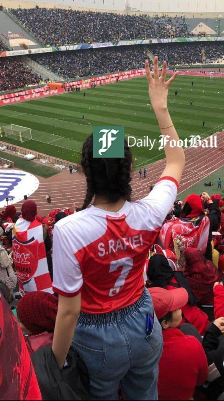 باورکردنی نیست تاسف آوره، تا این حد دگرگونی و تغییر ظرف فقط چندماه!؟ سبقت گرفتن از بن سلمانه!!!؟؟؟ تا همین پارسال یه دختر عشق فوتبال مثل اون فیلم باید لباس پسرونه می پوشید و گریم ریش پسرونه می ذاشت می رفت با ترس و دلهره به استادیوم فوتبال، حتی جرئت کشف حجاب نداشت چه برسه به کشف مانتو، حالا علنی این زنان بعد خیابون و مترو و پاساژها و حتی بهشت زهرا حالا نوبت استادیوم هم شد به کجا چنین شتابان!!؟؟ اونم با تی شرت و کشف حجاب علنی!؟ مثل این دختر که چه عرض کنم زن طرفدار قرمز!!؟؟کلاهتون رو بالاتر بذارید از این ولنگاری ۱۳ ماهه