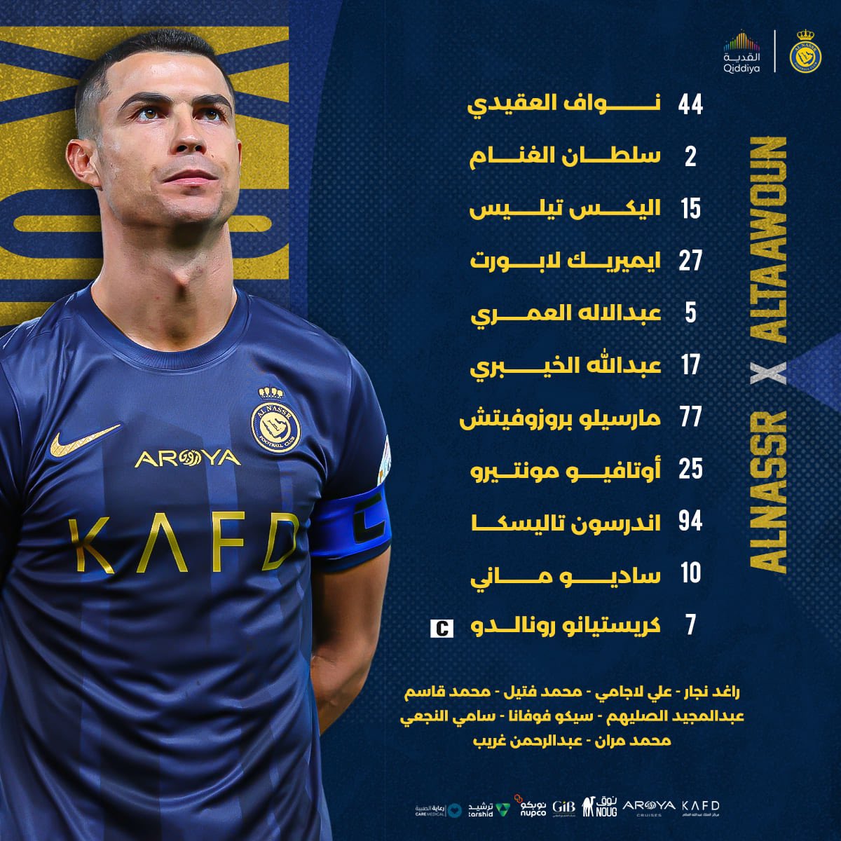 گفتنی است، کریستیانو رونالدو فوق ستاره پرتغالی النصر در ترکیب اصلی این تیم برای بازی با التعاون قرار گرفته و کاپیتان تیمش است.