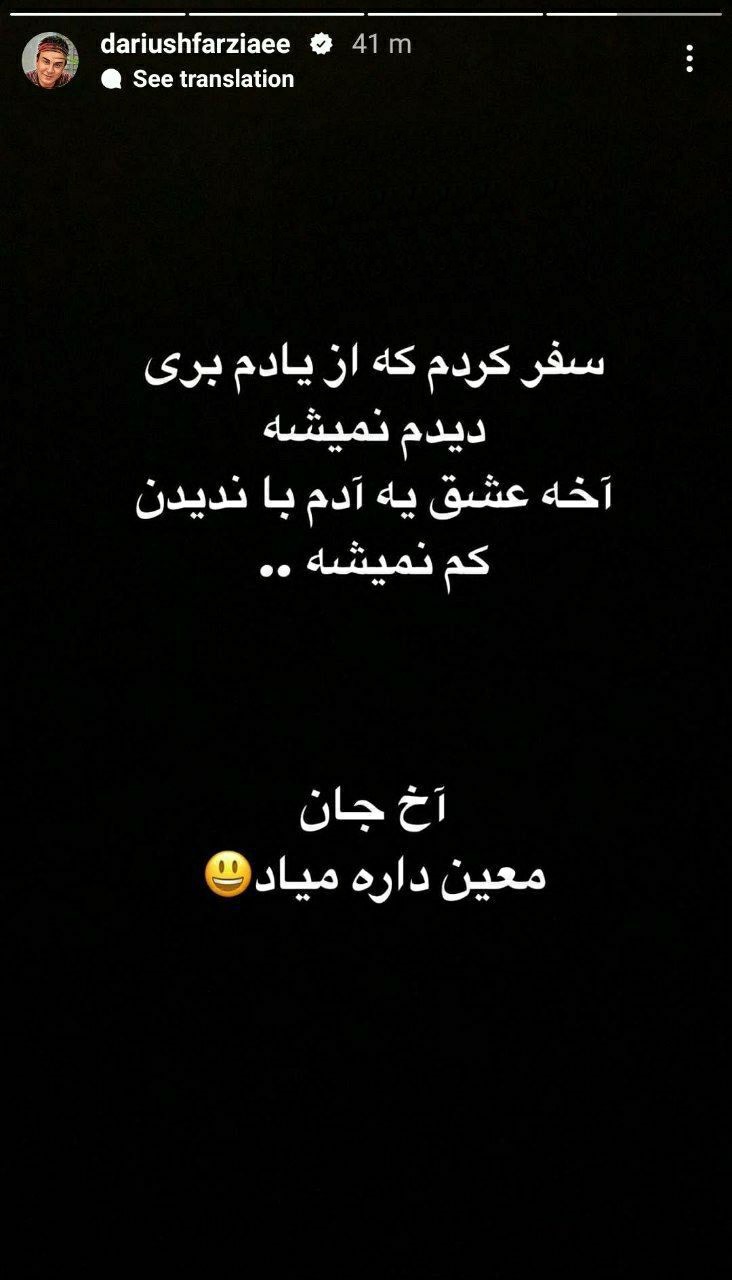به گزارش سرویس منهای فوتبال؛ داریوش فرضیایی (عمو پورنگ) با انتشار عکس نوشته ای در اینستاگرام به احتمال بازگشت معین خواننده به ایران واکنش جالبی نشان داد.