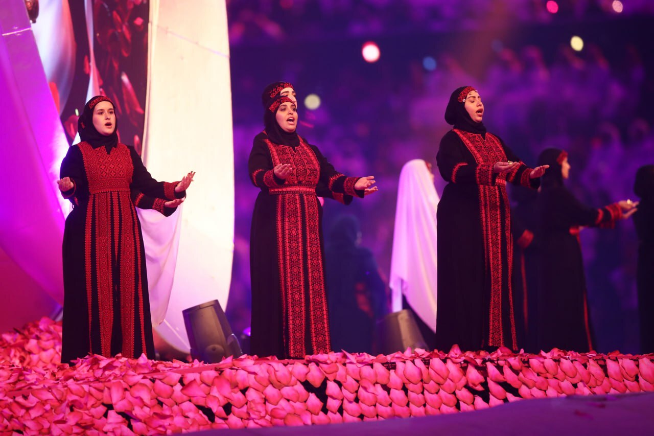 در این تصاویر که در شبکه های اجتماعی فراگیر شده، بانوان حاضر در مراسم افتتاحیه مسابقات جام ملت های آسیا در قطر با حجاب اسلامی نمایش اجرا کردند.