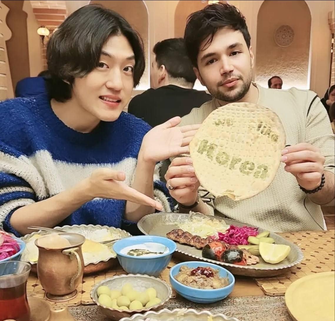در این تصویر که در شبکه های اجتماعی فراگیر شده، كيم جاى خواننده پرطرفدار كرهاى كه به تازگى مسلمان شده و نام خود را به داوود کیم تغییر داده است به تهران آمد.