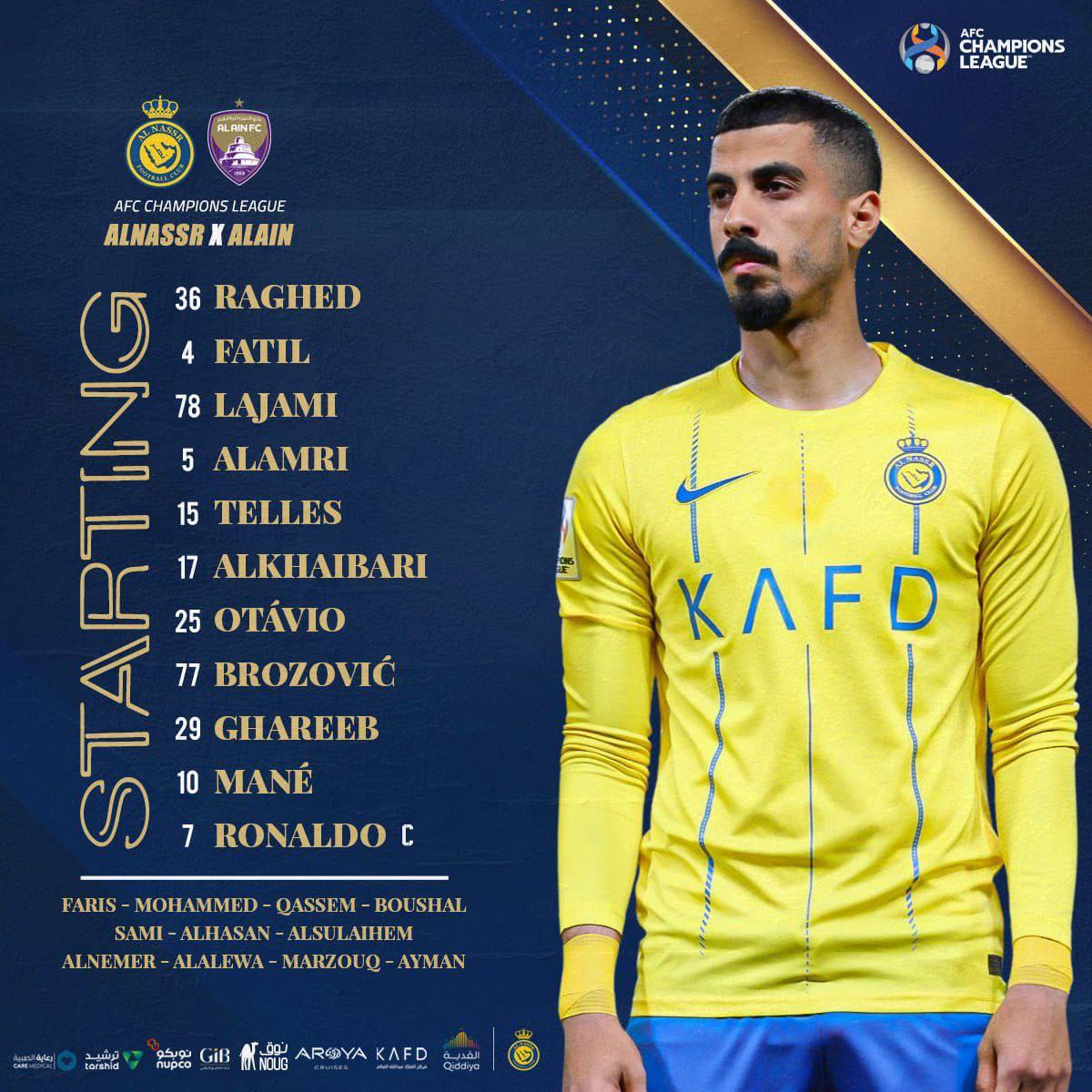 گفتنی است، کریستیانو رونالدو فوق ستاره پرتغالی النصر در ترکیب اصلی این تیم برای بازی با العین قرار گرفته و کاپیتان تیمش است.