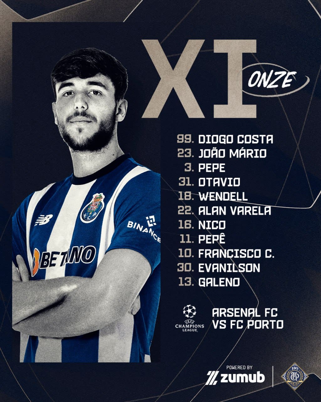 ترکیب اصلی پورتو برای بازی با آرسنال