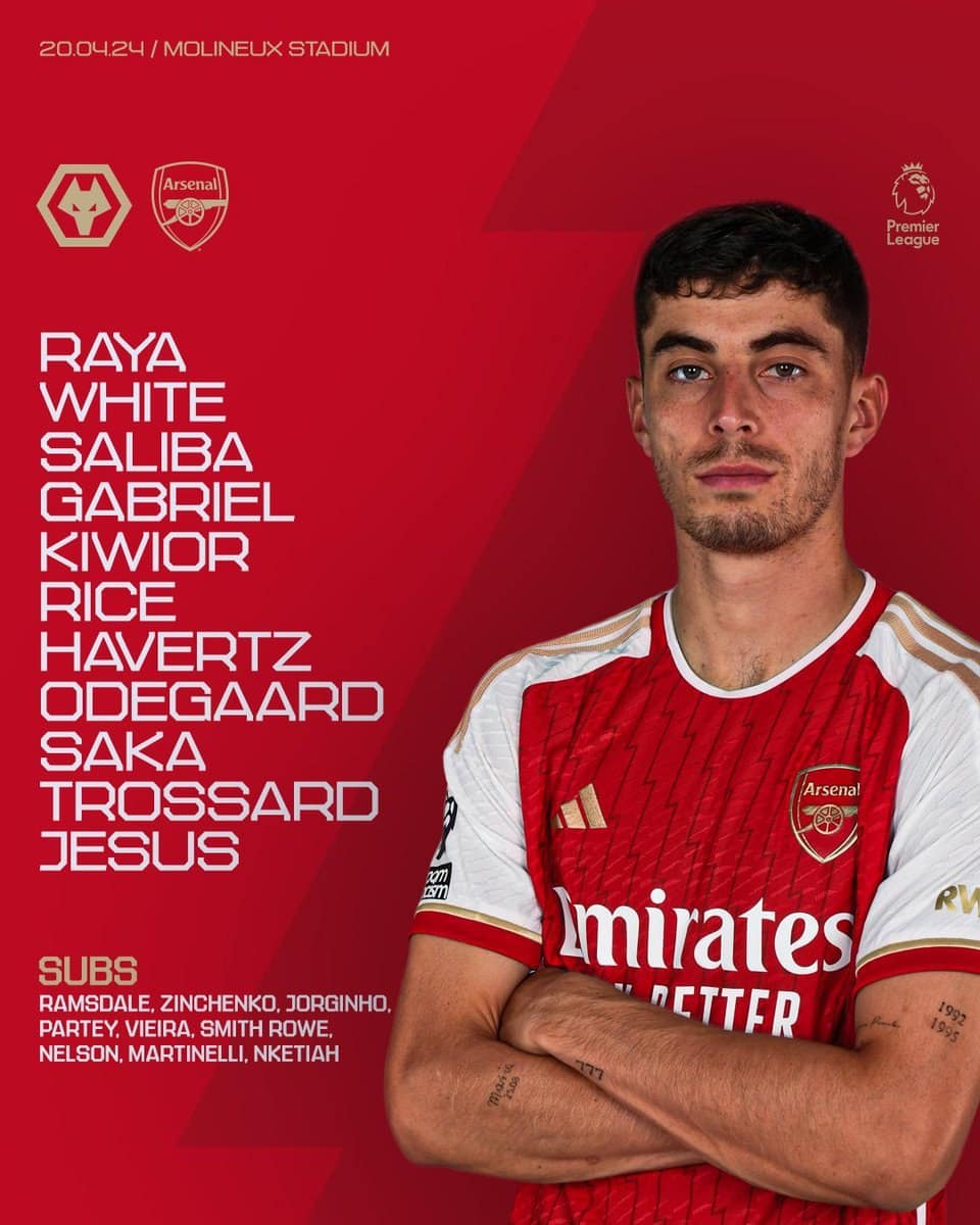 ترکیب آرسنال مقابل ولورهمپتون برای بازی امشب 1 اردیبهشت 1403