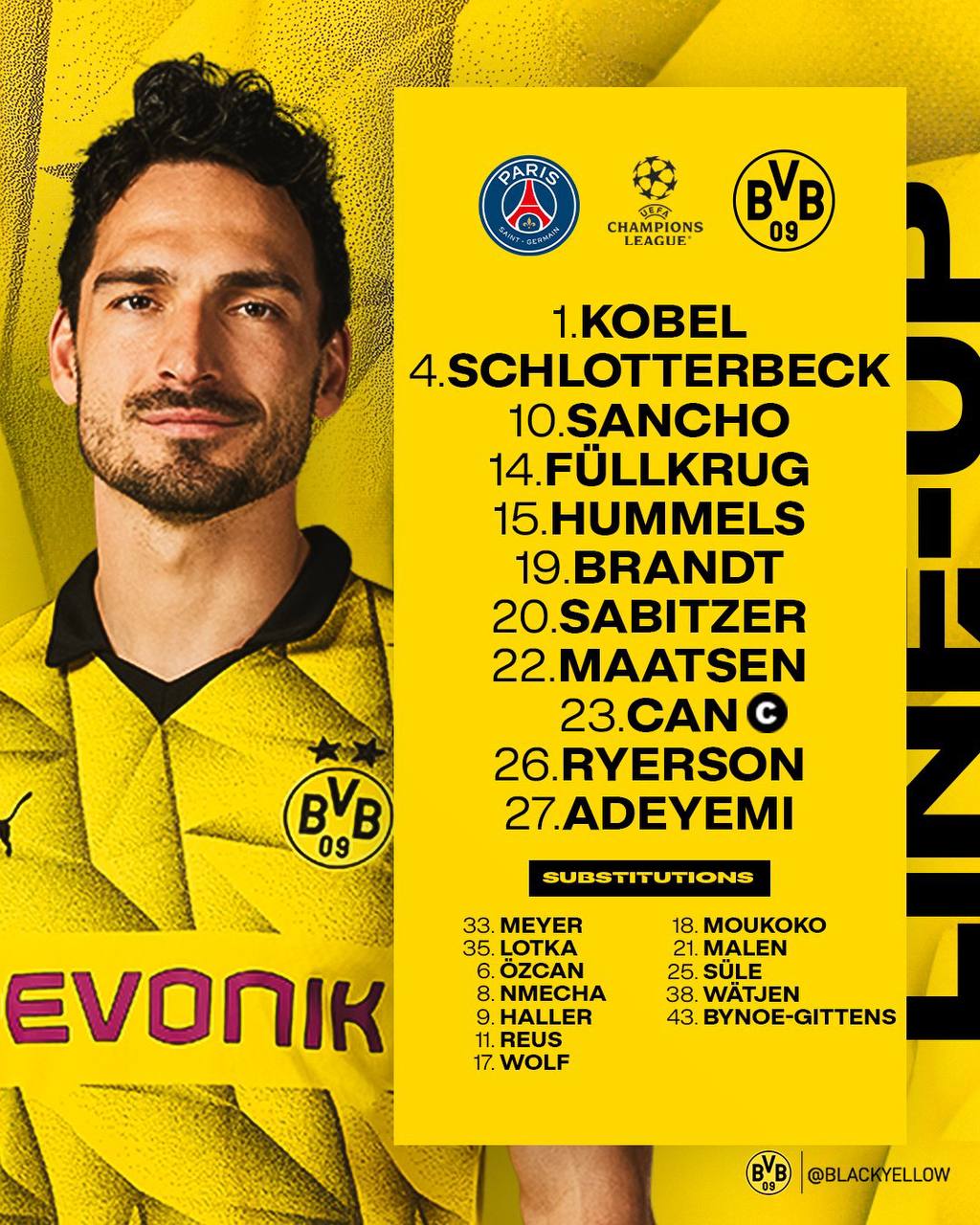 ترکیب اصلی دورتموند برای بازی با پی اس جی