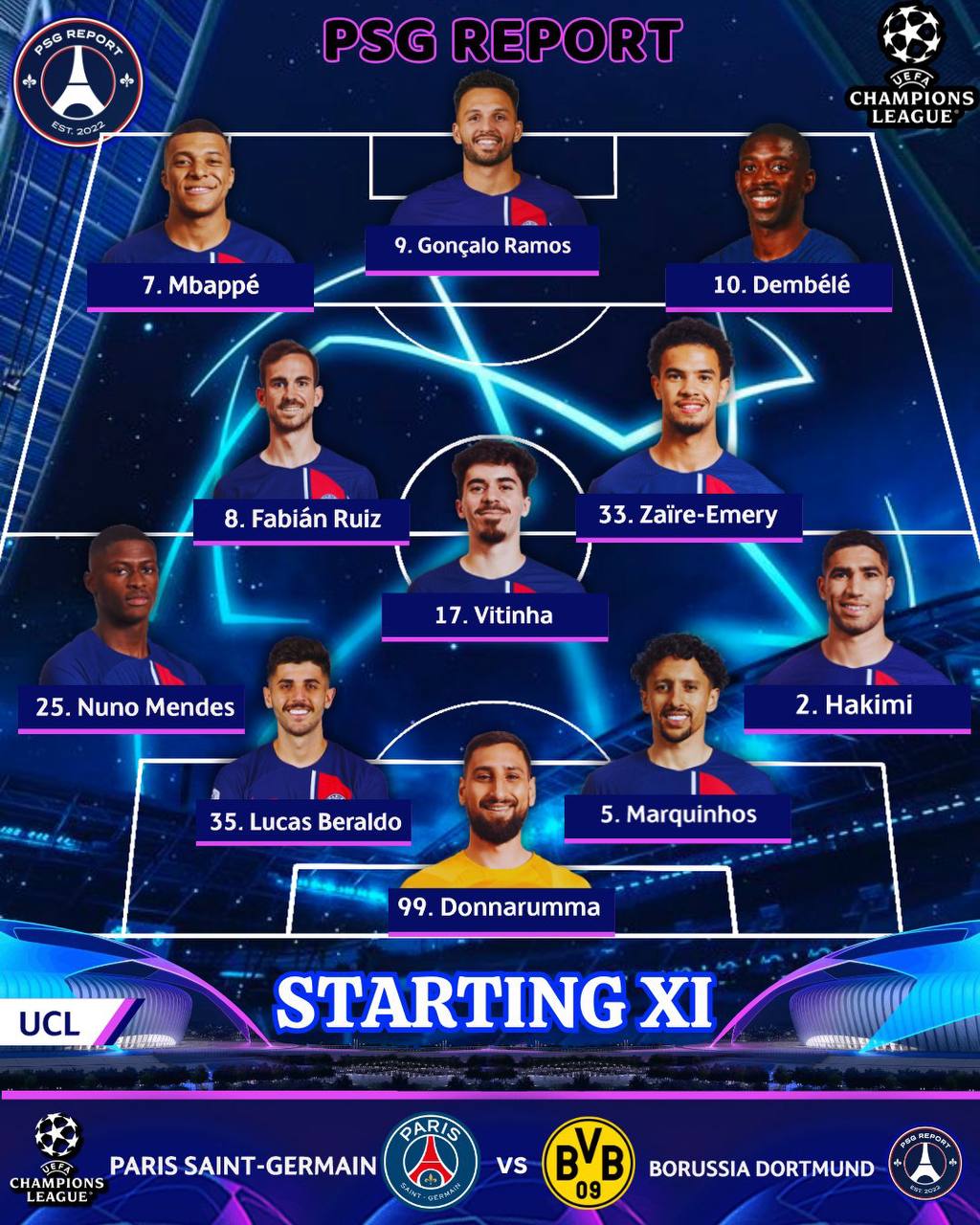ترکیب پاری سن ژرمن مقابل دورتموند برای بازی امشب 18 اردیبهشت 1403