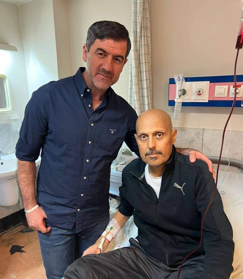در این تصویر که در شبکه های اجتماعی فراگیر شده، کریم باقری مربی سابق پرسپولیس از علی چینی پیشکسوت باشگاه استقلال که به دلیل مشکلات کلیوی در بیمارستان بستری است، عیادت کرد.