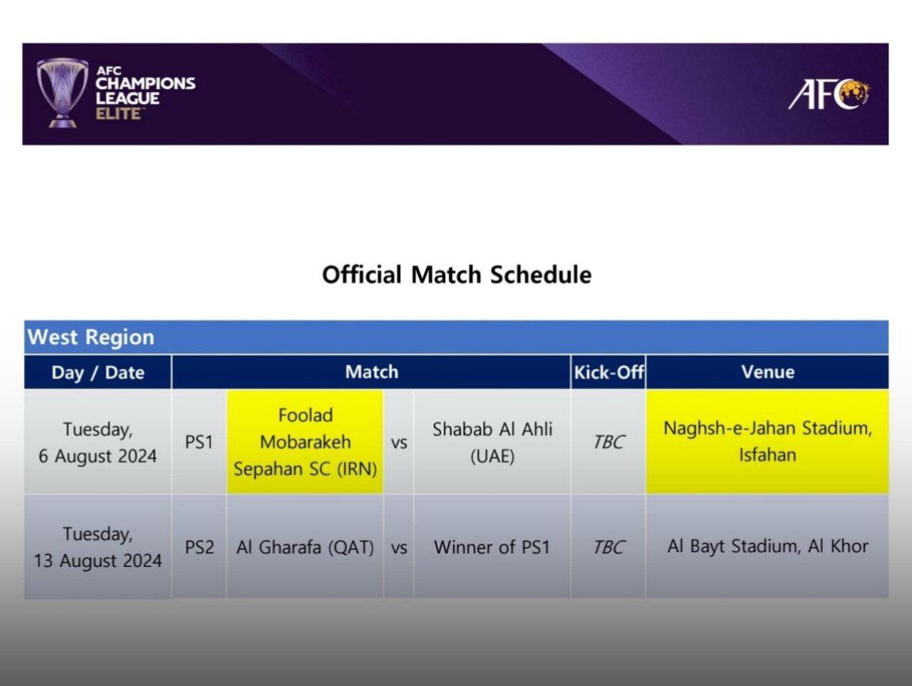 برنامه بازی های سپاهان در پلی آف لیگ نخبگان آسیا 2024