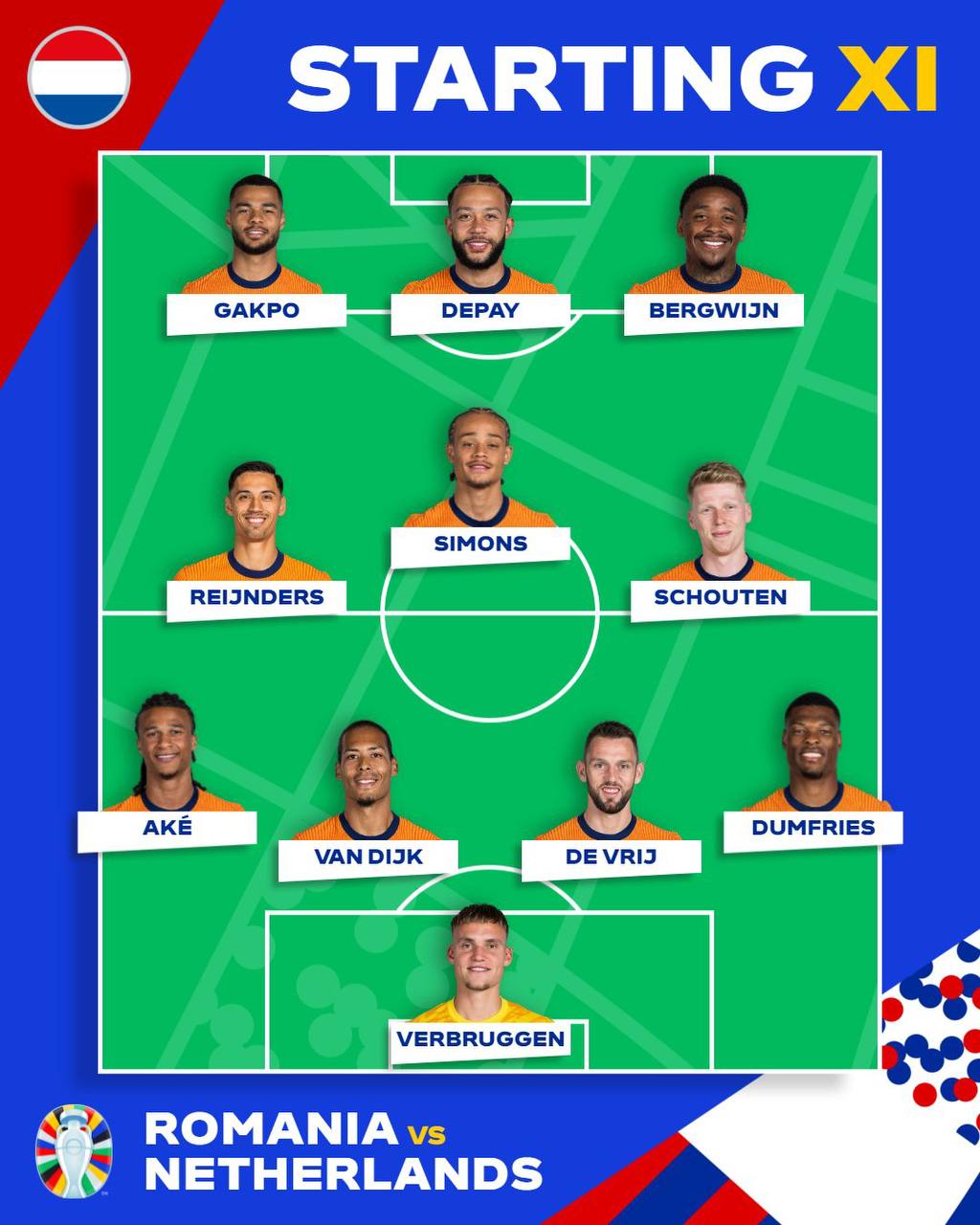 ترکیب تیم ملی هلند مقابل رومانی برای بازی امشب 12 تیر 1403