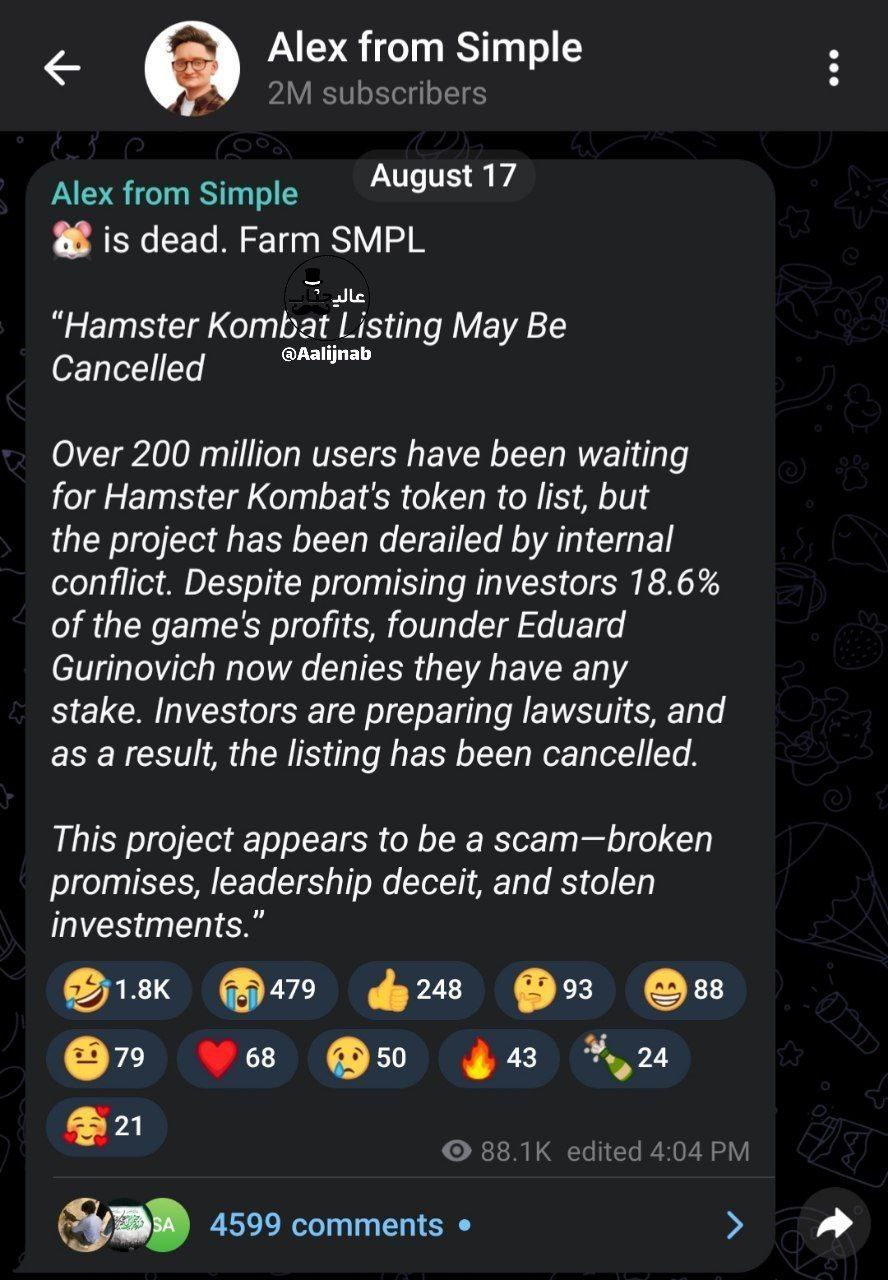 خبر ورشکستگی همستر کامبت از سوی مالک پروژه ایردراپی دیگر در تلگرام منتشر و به سرعت در فضای مجازی داغ شد.