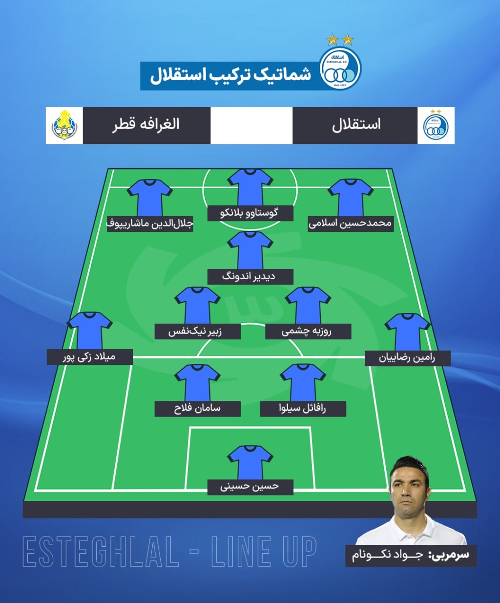 ترکیب استقلال مقابل الغرافه قطر برای بازی امشب 26 شهریور 1403