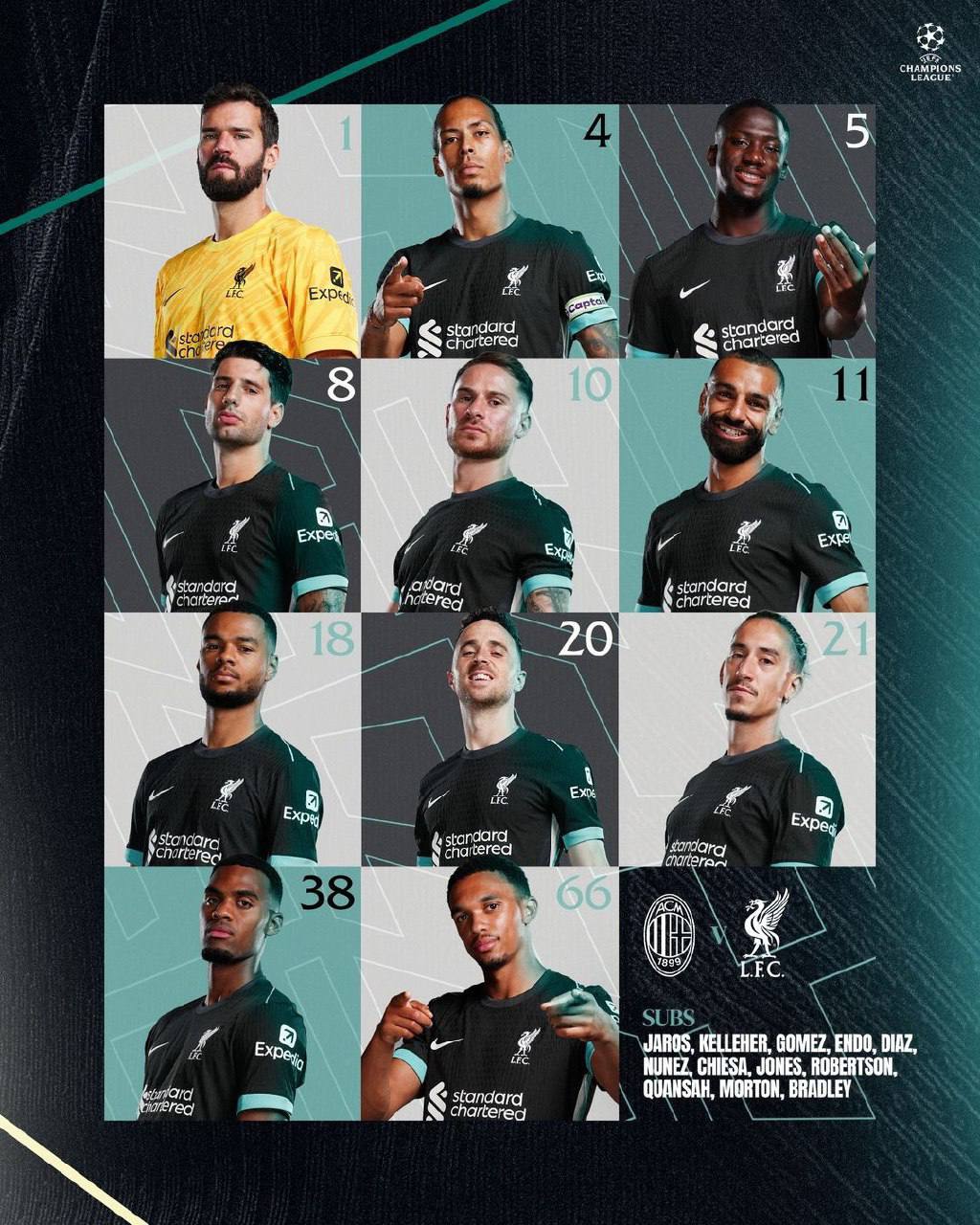 ترکیب لیورپول برابر میلان برای بازی امشب 27 شهریور 1403