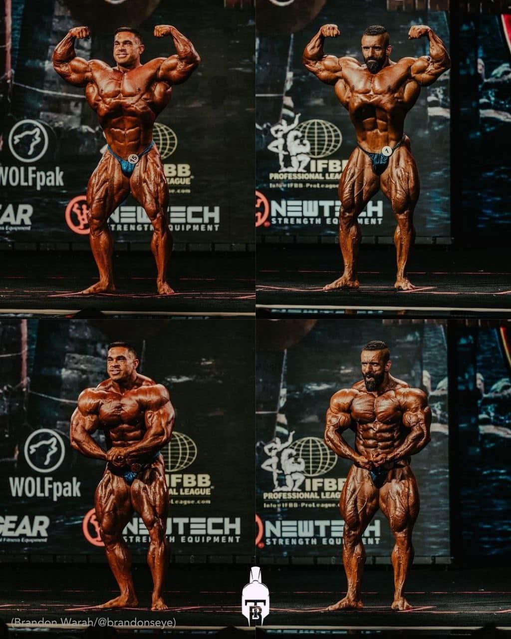 عکس مقایسه فیگورهای هادی چوپان و درک لانسفورد در مسترالمپیا 2024