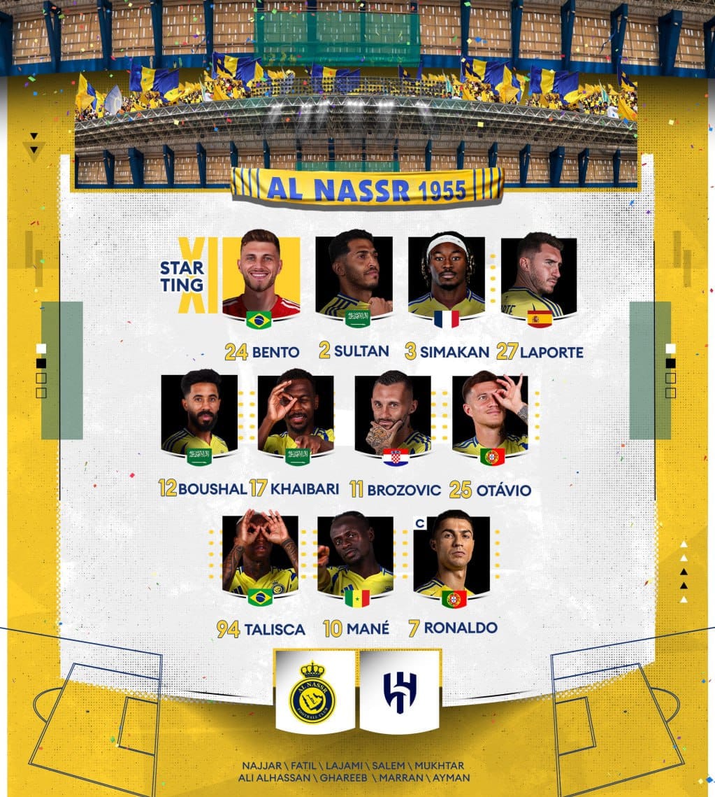 گفتنی است، کریستیانو رونالدو فوق ستاره پرتغالی النصر در ترکیب اصلی این تیم برای بازی با الهلال قرار گرفته و کاپیتان تیمش است.