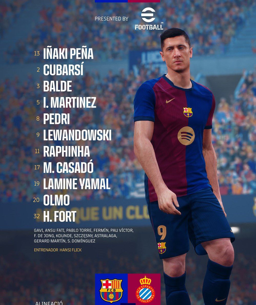 ترکیب بارسلونا مقابل اسپانیول برای بازی امشب 13 آبان 1403