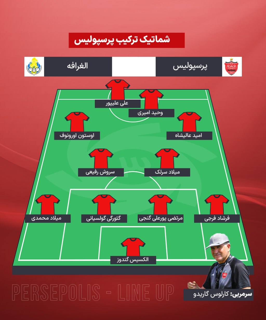 ترکیب پرسپولیس مقابل الغرافه قطر برای بازی امشب 14 آبان 1403