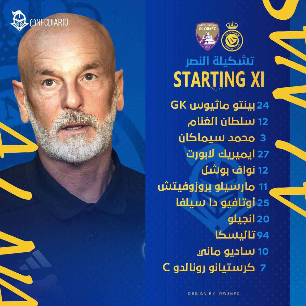 گفتنی است، کریستیانو رونالدو فوق ستاره پرتغالی النصر در ترکیب اصلی این تیم برای بازی با العین قرار گرفته و کاپیتان تیمش است.